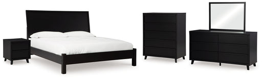 Full Panel Bed with Mirrored Dresser, Chest and Nightstand