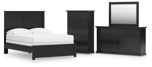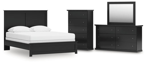 Full Panel Bed with Mirrored Dresser and Chest