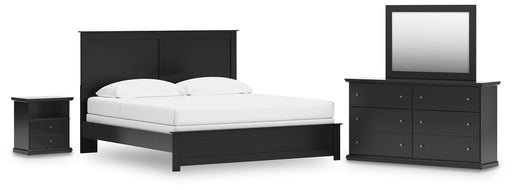 King Panel Bed with Mirrored Dresser