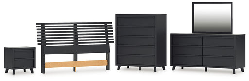 View full detailsWith its clean-lined look and modern attitude, this bedroom package is a fresh style awakening. A warm charcoal hue over replicated oak grain easil...
