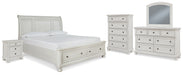Robbinsdale California King Sleigh Bed with Storage with Mirrored Dresser, Chest and Nightstand