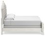 Details B980B5: Includes headboard, footboard and rails, Made with hardwood solids, spruce veneer, MDF substrates and cast resin components , Antiqued white painted finish, Polyester upholstery, Button tufting, Foundation/box spring required, sold separately, Mattress available, sold separately, Assembly required, B980B1: Includes dresser and mirror, Made with hardwood solids, spruce veneer, MDF substrates and cast resin components, Antiqued white painted finish, 9 drawers with fully finished interiors, French and English dovetail construction and ball-bearing side glides, Metal bar pulls with aged pewter-tone finish, Mirror attaches to back of dresser,