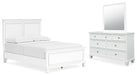 Details | B680B8: Includes full panel headboard, footboard and rails, Made with hardwood solids and MDF substrate, White painted finish, Tapered feet, Foundation/box spring required, sold separately, Mattress available, sold separately, Assembly required, Bed is compatible with an adjustable base, B680B1: Includes dresser and mirror, Made with hardwood solids and MDF substrate, White painted finish, 7 smooth-gliding drawers with dovetail construction and ball-bearing side glides, Round metal drawer knobs with satin nickel-tone finish, Tapered feet, Mirror attaches to back of dresser, Assembly required, | |