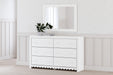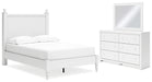 Details | B2540B3: Includes panel headboard and panel footboard with rails, Made with engineered wood (MDF/particleboard/plywood) and decorative laminate for the right balance of affordability and durability, Matte white finish, Decorative laminate replicates natural or man-made material surfaces with consistent color, pattern and texture, Foundation/box spring required, sold separately, Mattress available, sold separately, Minor assembly required, B2540B1: Includes dresser and mirror , Made with engineered wood (MDF/particleboard/plywood) and decorative laminate for the right balance of affordability and durability, Matte white finish, Decorative laminate replicates natural or man-made material surfaces with consistent color, pattern and texture, Simple white knobs, 6 smooth-gliding drawers, Drawer interiors are lined with a faux linen laminate for a clean, finished look, Mirror can be attached to back of dresser or wall mounted horizontally or vertically, Safety is a top priority, clothing storage units are designed to meet the most current standard for stability, ASTM F 2057 (ASTM International) , Drawers extend out to accommodate maximum access to drawer interior while maintaining safety, Minor assembly required, | |