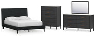 Cadmori Full Upholstered Bed with Mirrored Dresser and Chest
