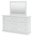Details B139B47: Includes panel headboard/footboard and rails, Made with engineered wood (MDF/particleboard/plywood) and decorative laminate for the right balance of affordability and durability, Replicated solid white paint, Decorative laminate replicates natural or man-made material surfaces with consistent color, pattern and texture, Foundation/box spring required, sold separately, Mattress available, sold separately, Assembly required, B139B40: Includes dresser and mirror, Made of engineered wood (MDF/particleboard), Knobs with pewter-tone finish, Scalloped moulding, 6 smooth-operating drawers, Includes tipover restraint device, Mirror attaches to back of dresser; can also be mounted on wall horizontally or vertically, Safety is a top priority, clothing storage units are designed to meet the most current standard for stability, ASTM F 2057 (ASTM International), Drawers extend out to accommodate maximum access to drawer interior while maintaining safety,