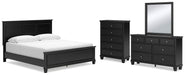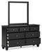 Details | B687B8: Includes king panel headboard, footboard and rails, Made with hardwood solids, birch veneer and MDF substrate, Black painted finish, Thick profiled tops, Tapered feet, Foundation/box spring required, sold separately, Mattress available, sold separately, Assembly required, Bed is compatible with an adjustable base, B687B1: Includes dresser and mirror, Made with hardwood solids, birch veneer and MDF substrate, Black painted finish, 7 smooth-gliding drawers with dovetail construction and ball-bearing side glides, Round metal drawer knobs with satin nickel-tone finish, Framed drawer fronts, Tapered feet, Mirror attaches to back of dresser, Assembly required, B687-46: Made with hardwood solids, birch veneer and MDF substrate, Black painted finish, 5 smooth-gliding drawers with dovetail construction and ball-bearing side glides, Round metal drawer knobs with satin nickel-tone finish, Framed drawer fronts, Tapered feet, | |