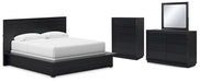 Londer King Panel Bed with Mirrored Dresser and Chest