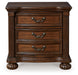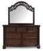 Details | B764B9: Includes poster headboard/footboard panels, rails and headboard posts, Made with hardwood solids, cherry veneer with MDF substrates, decorative cast resin and furniture grade plastic components , Cherry brown finish, Headboard with metallic accent filigree, Foundation/box spring required, sold separately, Mattress available, sold separately, Assembly required, B764B1: Includes dresser and mirror, Made with hardwood solids, cherry veneer with MDF substrates, decorative cast resin and furniture grade plastic components , Cherry brown finish, Decorative metal drawer pulls with dark bronze-tone finish, 7 drawers with fully finished interior, dovetail construction and ball-bearing side glides, Mirror attaches to back of dresser, B764-46: Made with hardwood solids, cherry veneer with MDF substrates, decorative cast resin and furniture grade plastic components, Cherry brown finish, Decorative metal drawer pulls with dark bronze-tone finish, 5 drawers with fully finished interior, dovetail construction and ball-bearing side glides, B764-93: Made with hardwood solids, cherry veneer with MDF substrates, decorative cast resin and furniture grade plastic components, Cherry brown finish, Decorative metal drawer pulls with dark bronze-tone finish, 2 drawers with fully finished interior, dovetail construction and ball-bearing side glides, Pull-out tray behind bottom drawer, | |