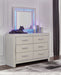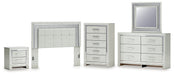 Zyniden Queen Upholstered Panel Headboard with Mirrored Dresser, Chest and Nightstand