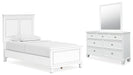 Details | B680B6: Includes twin panel headboard, footboard and rails, Made with hardwood solids and MDF substrate, White painted finish, Tapered feet, Foundation/box spring required, sold separately, Mattress available, sold separately, Assembly required, Bed is compatible with an adjustable base, B680B1: Includes dresser and mirror, Made with hardwood solids and MDF substrate, White painted finish, 7 smooth-gliding drawers with dovetail construction and ball-bearing side glides, Round metal drawer knobs with satin nickel-tone finish, Tapered feet, Mirror attaches to back of dresser, Assembly required, | |
