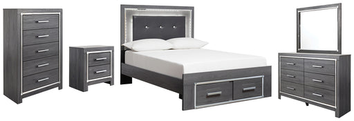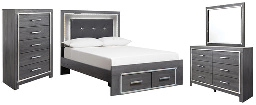 Lodanna Full Panel Bed with 2 Storage Drawers with Mirrored Dresser, Chest and Nightstand
