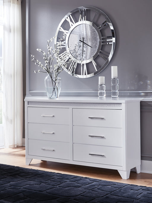 View full detailsThis dresser is a showstopper, bringing a touch of modern glamour to your sanctuary. A sleek white finish and inset glitter accents create a sophis...