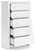 Details | Made with engineered wood (MDF/particleboard/plywood) and decorative laminate for the right balance of affordability and durability, Matte white finish, Decorative laminate replicates natural or man-made material surfaces with consistent color, pattern and texture, Simple white knobs, 5 smooth-gliding drawers, Drawer interiors are lined with a faux linen laminate for a clean, finished look, Safety is a top priority, clothing storage units are designed to meet the most current standard for stability, ASTM F 2057 (ASTM International), Drawers extend out to accommodate maximum access to drawer interior while maintaining safety, Minor assembly required | |