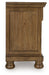 Details | Made with pine solids, veneer and MDF substrate, Chestnut brown wood-tone finish, Metal knobs with aged pewter-tone finish, 2 smooth-gliding drawers with fully finished interiors, English dovetail construction and heavy-duty ball-bearing side glides, Pull-out tray and top drawer felt lined (pull-out tray behind bottom drawer) | |
