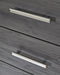 Details Made of engineered wood (MDF/particleboard) and decorative laminate, Gray finish with replicated wood grain, Faceted chrome-tone pulls and accents, 2 smooth-operating drawers, Drawer interiors are lined with a faux linen laminate for a clean, finished look, USB and wireless charging options, Power cord included; UL Listed, Assembly required