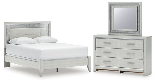Zyniden Queen Upholstered Panel Bed with Mirrored Dresser