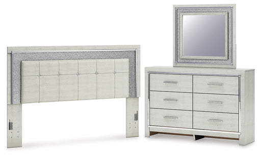 Zyniden King Upholstered Panel Headboard with Mirrored Dresser