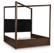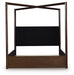 Details | Includes canopy, upholstered headboard, footboard, rails, posts and slats, Made with hardwood solids, mango wood veneer and MDF substrates , Side rails feature laminated solid hardwood slat support rails (or LVL) with glued and screwed blocking for added strength, Complex, rich dark brown finish, Foam headboard cushion with polyester upholstery , Measure room, including ceiling height, to ensure bed clears fans and light fixtures, Foam cushion with polyester upholstery , Foundation/box spring required, sold separately , Mattress available, sold separately , USB-A and USB-C charging ports, Power cord included; UL Listed, Assembly required | |