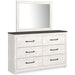 Details | B1190B4: Includes headboard, footboard and rails, Made of engineered wood (MDF/particleboard) and decorative laminate, White rustic finish with replicated cedar grain, Foundation/box spring required, sold separately, Mattress not included, sold separately, Assembly required, Bed is compatible with an adjustable base, B1190B1: Includes dresser with mirror, Made of engineered wood (MDF/particleboard) and decorative laminate, White rustic finish with replicated cedar grain, Rustic gray planked replicated oak grain with authentic touch, 6 smooth-gliding drawers with faux linen lining, Large scale dark colored handles, Mirror attaches to back of dresser, Assembly required, B1190-44: Made of engineered wood (MDF/particleboard), and decorative laminate, White rustic finish with replicated cedar grain, Rustic gray planked replicated oak grain with authentic touch, 4 smooth-gliding drawers with faux linen lining, Large scale dark colored handles, Safety is a top priority, clothing storage units are designed to meet the most current standard for stability, ASTM F 2057 (ASTM International), Drawers extend out to accommodate maximum access to drawer interior while maintaining safety, Assembly required, | |