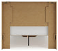 Details B2310B20: Includes panel headboard, storage footboard, platform rails and roll slats , Made with engineered wood (MDF/particleboard/plywood) and decorative laminate for the right balance of affordability and durability, Rustic white finish over replicated reclaimed oak grain with authentic touch, Decorative laminate replicates natural or man-made material surfaces with consistent color, pattern and texture, 2 smooth-gliding storage drawers, Drawer interiors are lined with a faux linen laminate for a clean, finished look, Bed does not require additional foundation/box spring; accommodates most zero clearance adjustable bases with the addition of a bunkie board , Mattress available, sold separately, Minor assembly required, B2310B1: Made with engineered wood (MDF/particleboard/plywood) and decorative laminate for the right balance of affordability and durability, Rustic white finish over replicated reclaimed oak grain with authentic touch, Decorative laminate replicates natural or man-made material surfaces with consistent color, pattern and texture, Handles with dark pewter-tone finish, 6 smooth-gliding drawers, Drawer interiors are lined with a faux linen laminate for a clean, finished look, Framed front and pilasters, Safety is a top priority, clothing storage units are designed to meet the most current standard for stability, ASTM F 2057 (ASTM International), Drawers extend out to accommodate maximum access to drawer interior while maintaining safety, Mirror attaches to back of dresser; can also be mounted on wall horizontally or vertically , Minor assembly required, B2310-46: Made with engineered wood (MDF/particleboard/plywood) and decorative laminate for the right balance of affordability and durability, Rustic white finish over replicated reclaimed oak grain with authentic touch, Decorative laminate replicates natural or man-made material surfaces with consistent color, pattern and texture, Handles with dark pewter-tone finish, 5 smooth-gliding drawers, Drawer interiors are lined with a faux linen laminate for a clean, finished look, Framed front and pilasters, Safety is a top priority, clothing storage units are designed to meet the most current standard for stability, ASTM F 2057 (ASTM International), Drawers extend out to accommodate maximum access to drawer interior while maintaining safety, Minor assembly required,