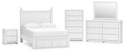 Mollviney Full Panel Storage Bed with Mirrored Dresser, Chest and Nightstand