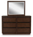 Details | PCB857B6: Includes canopy, upholstered headboard, footboard, rails, posts and slats, Made with hardwood solids, mango wood veneer and MDF substrates , Side rails feature laminated solid hardwood slat support rails (or LVL) with glued and screwed blocking for added strength, Complex, rich dark brown finish, Foam headboard cushion with polyester upholstery , Measure room, including ceiling height, to ensure bed clears fans and light fixtures, Foam cushion with polyester upholstery , Foundation/box spring required, sold separately , Mattress available, sold separately , USB-A and USB-C charging ports, Power cord included; UL Listed, Assembly required, PCB857B1: Made with hardwood solids, mango wood veneer and MDF substrates , Complex, rich dark brown finish, Full-length metal rail pulls with matte black finish, 6 smooth-gliding drawers with fully finished interiors, dovetail construction and heavy-duty ball-bearing side glides (top drawers felt lined), Mirror attaches to back of dresser, Soft rounded pilasters, Raised plinth base, PCB857-46: Made with hardwood solids, mango wood veneer and MDF substrates, Complex, rich dark brown finish, Metal rail pulls with matte black finish, 5 smooth-gliding drawers with fully finished interiors, dovetail construction and heavy-duty ball-bearing side glides (top drawer felt lined), Soft rounded pilasters, Raised plinth base, | |