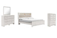 Altyra King Panel Bookcase Bed with Mirrored Dresser and Chest