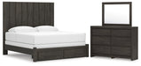 Details | PCB3370B9: Includes headboard panel, headboard posts, storage footboard and rails, Made with engineered wood (MDF/particleboard/plywood) and decorative laminate for the right balance of affordability and durability , Dark charcoal finish over replicated oak grain, Decorative laminate replicates natural or man-made material surfaces with consistent color, pattern and texture, 2 smooth-gliding drawers in footboard, Foundation/box spring required, sold separately, Mattress available, sold separately, Assembly required, PCB3370B1: Includes dresser and mirror, Made with engineered wood (MDF/particleboard/plywood) and decorative laminate for the right balance of affordability and durability , Dark charcoal finish over replicated oak grain, Decorative laminate replicates natural or man-made material surfaces with consistent color, pattern and texture, Recessed hand grabs create hardware-less effect, 6 smooth-gliding drawers, Drawer interiors are lined with a faux linen laminate for a clean, finished look , Safety is a top priority, clothing storage units are designed to meet the most current standard for stability, ASTM F 2057 (ASTM International), Drawers extend out to accommodate maximum access to drawer interior while maintaining safety, Mirror attaches to back of dresser; can also be mounted on wall horizontally or vertically, Assembly required, | |