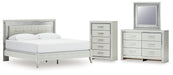 Zyniden King Upholstered Panel Bed with Mirrored Dresser and Chest