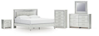 Zyniden King Upholstered Panel Bed with Mirrored Dresser, Chest and Nightstand
