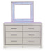 Zyniden King Upholstered Panel Headboard with Mirrored Dresser, Chest and Nightstand