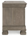 Details B924B2: Includes panel headboard and sleigh footboard with rails, Made with hardwood solids, birch veneer and MDF substrate, Light gray finish enhances the natural wood grain, Foundation/box spring required, sold separately, Mattress available, sold separately, Assembly required, B924B1: Includes dresser and mirror, Made with hardwood solids, birch veneer and MDF substrate, Light gray finish enhances the natural wood grain, Ring pull hardware, 9 drawers with fully finished interiors, dovetail construction and ball-bearing side glides, Jewelry drawer conveniently located in the center valance, Mirror attaches to back of dresser, B924-46: Made with hardwood solids, birch veneer and MDF substrate, Light gray finish enhances the natural wood grain, Ring pull hardware, 5 drawers with fully finished interiors, dovetail construction and ball-bearing side glides, B924-93: Made with hardwood solids, birch veneer and MDF substrate, Light gray finish enhances the natural wood grain, Ring pull hardware, 3 drawers with fully finished interiors, dovetail construction and ball-bearing side glides, Small accessory drawer conveniently located in the upper valance, 110V power supply with dual USB charging ports, Power cord included; UL Listed,
