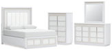 Chalanna Queen Upholstered Storage Bed with Mirrored Dresser and Chest