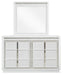 Details B822B2: Includes queen upholstered headboard, storage footboard, rails and roll slats, Made with solid wood components, MDF substrate and decorative laminate, White lacquer finish, Vertical metal drawer pulls, Faux leather upholstery, Built-in LED lighting with 3-way dimmer switch, 2 drawers with fully finished interior, dovetail construction and ball-bearing side glides, Drawers with rhinestone frames; textured laminate drawer fronts, Power cord included; UL Listed, Bed does not require additional foundation/box spring; accommodates most zero clearance adjustable bases with the addition of a bunkie board, Mattress available, sold separately, Assembly required, B822B1: Includes dresser and mirror, Made with solid wood components, MDF substrate and decorative laminate, White lacquer finish, Vertical metal drawer pulls, Built-in LED lighting with 3-way dimmer switch, 6 drawers with fully finished interior, dovetail construction and heavy duty ball-bearing side glides, Drawers with rhinestone frames; textured laminate drawer fronts, Mirror attaches to back of dresser, Power cord included; UL Listed, B822-46: Made with solid wood components, MDF substrate and decorative laminate, White lacquer finish, Vertical metal drawer pulls, Built-in LED lighting with 3-way dimmer switch, 5 drawers with fully finished interior, dovetail construction and heavy duty ball-bearing side glides, Drawers with rhinestone frames; textured laminate drawer fronts, Power cord included; UL Listed,