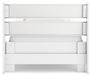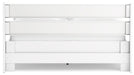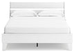 Details | Queen panel platform bed includes panel headboard and platform bed, Made with engineered wood (MDF/particleboard) and decorative laminate, Decorative laminate replicates natural or man-made material surfaces with consistent color, pattern and texture, Matte white finish, Bed does not require additional foundation/box spring; accommodates most zero clearance adjustable bases, Mattress available, sold separately , Assembly required | |