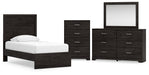 Belachime Twin Panel Bed with Mirrored Dresser and Chest