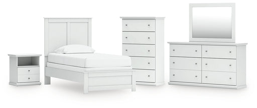 Twin Panel Bed with Mirrored Dresser and Nightstand