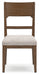 This dining chair sits comfortably at the intersection of modern lodge and farmhouse aesthetics. Your warm and welcoming disposition is reflected in its charming architectural elements and neutral textural fabric. Even with its poise, the chair remains practical. Its cushioned seat invites you to linger longer at the table, defining your dining room with reliable function and style.