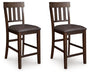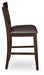 Modern sophistication, beautifully served. This bar stool raises the bar with a cool, rake back design with staggered rungs for added interest. Dark and rich, the monochromatic finish enhances its sleek profile. Faux leather seat upholstery offers easy-care appeal.