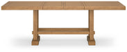 Details | D773-32: Made with rubberwood solids, distressed pine veneers and MDF substrates, Distressed light brown pine finish, Double trestle base, Seats up to 10, 2 removable center leaves, Table extends by pulling both ends and dropping in leaf, Solid wood stretcher, Assembly required, D773-124: Made with wood, Distressed light brown pine finish, Foam cushion with textured polyester upholstery, Assembly required, | |