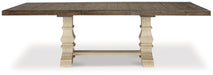 Details | D647D17: Made with wood, veneer and engineered wood, Tabletop with textural weathered oak finish , Base with textured antiqued white finish , Removable center leaf, Table extends to 103" by pulling both ends and dropping in leaf, Seats up to 10 with removable leaf in place, Dining chairs sold separately, Assembly required, D647-01: Made of solid wood, Antiqued white finish, Cushioned seat upholstered in heavy woven polyester fabric, Assembly required, D647-02: Made of wood and engineered wood, Antiqued white finish, Cushioned seat with heavy woven polyester upholstery on front/back, Assembly required, | |