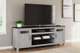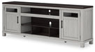 Make a farmhouse-inspired statement with this TV stand. It’s beautifully crafted to stand the test of time, with a planked effect and clean two-tone finish that lend a relaxing vintage feel. With two cabinets (each with an adjustable shelf) and an open cubby, it offers plenty of storage to house all of your electronic needs. Enhancing the experience: the optional fireplace insert (sold separately) brings a touch of warmth and beautiful ambiance to your living room.