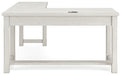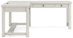 Details | Includes desk and desk return, Made with hardwood solids, ash veneer and MDF substrates, Antiqued white finish with wood grain texture, Round metal knobs with aged pewter-tone finish, 3 smooth-gliding drawers , Wide keyboard drawer with drop-down front, Cutout for cord management, 110V power supply with USB-A and USB-C charging ports , Power cord included; UL Listed, Assembly required | |