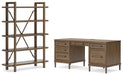 Details | H769-21: Made with hardwood solids, oak veneer and MDF substrate, Brown oak finish, Wood and metal drawer pulls, 5 standard drawers; 1 file drawer, Drawers with dovetail construction, fully finished interiors and ball-bearing side glides, 110V power supply with USB-A and USB-C charging ports, Power cord included; UL Listed, Open raceway for power cord management, Assembly required, H769-70: Frames made with solid wood, Shelves made with hardwood solids, oak veneer and MDF substrate, Brown oak finish, 5 shelves, Back brace set with metal hook and keepers, Assembly required, | |