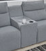 Details | Includes 6 modular pieces: left-arm facing power reclining back chaise, power armless recliner, armless chair, console, wedge and right-arm facing power recliner, "Left-arm" and "right-arm" describe the position of the arm when you face the piece, Versatile modular pieces fit together in a variety of configurations, One-touch power control with adjustable positions, Easy View™ adjustable headrest and zero-draw USB port, Zero-draw technology only consumes power when the USB receptacle is in use, Corner-blocked frame with metal reinforced seat, Attached seat and back cushions; high-quality foam cushions wrapped in poly fiber, Polyester upholstery; Next-Gen Nuvella™ is a family-friendly fabric that is soft, easy to clean, stain-resistant and durable, Clean fabric with mild soap and water, let air dry; for stubborn stains, use a solution of 4 oz. bleach to 28 oz. water, Throw pillows with easy-to-remove zippered covers for machine washing; pillows with soft polyfill, Console with plexiglass top and 2 cup holders, Zero wall recliner design requires minimal space between wall and chair back, Power cord included; UL Listed | |