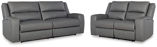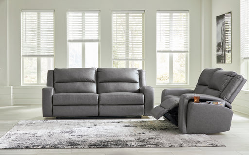 View full detailsThis sleek, ultra-modern power reclining seating package has it all. With designer style and head-to-toe comfort, it has the upscale look of leathe...