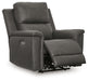 Are you ready to experience next-level relaxation? This power recliner combines supple leather and faux leather upholstery with smart features that make unwinding effortless. With just one touch, you can adjust your position while the power headrest keeps you perfectly aligned for reading or binge-watching your favorite shows. The Zero³ reclining requires minimal space between wall and chair back while delivering fully supported, fully reclined comfort at the touch of a button. Thoughtfully designed with sculptural padded arms and built-in USB charging, this spacious piece will be your new favorite spot to recharge both yourself and your devices.