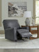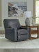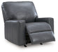 Details | Pull tab reclining motion, Gentle rocking motion, Corner-blocked frame, Attached cushions, High-quality foam cushions wrapped in poly fiber, 100% top grain leather covers inside areas such as the back, seat and arm cushions; skillfully matched faux leather covers the remaining areas, Corrected grain leather; two-tone sauvage effect enhances the depth of the color, Due to its natural origin, real leather can show individual characteristics such as healed scars, growth marks, grain variation and shade variation, Natural variations make each hide unique and do not detract from the wearing qualities of leather, Exposed feet with faux wood finish | |