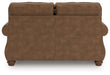 Everyone can have the best seat in the house with this loveseat. Its nailhead trim puts the finishing touches on the traditional roll arms you love. Comfy, durable cushions—wrapped in a rustic yet sophisticated faux leather—keep you feeling relaxed. Chenille pillows in a distressed motif pattern add another layer of comfort. And the loveseat's turned legs show that style and quality flow from top to bottom.